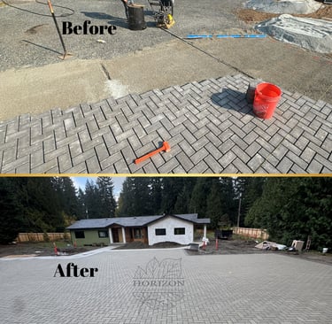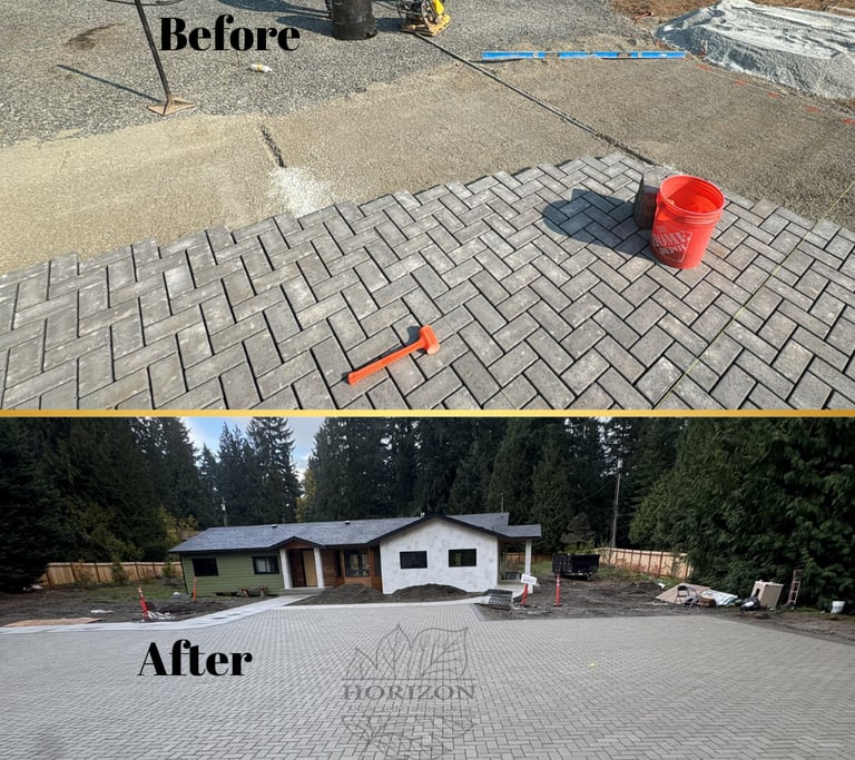 The project began with excavation and multi-layer base preparation to support a large continuous surface. Through precise grading and structured herringbone installation, we delivered a durable, evenly aligned paver system designed for long-term structural performance.
