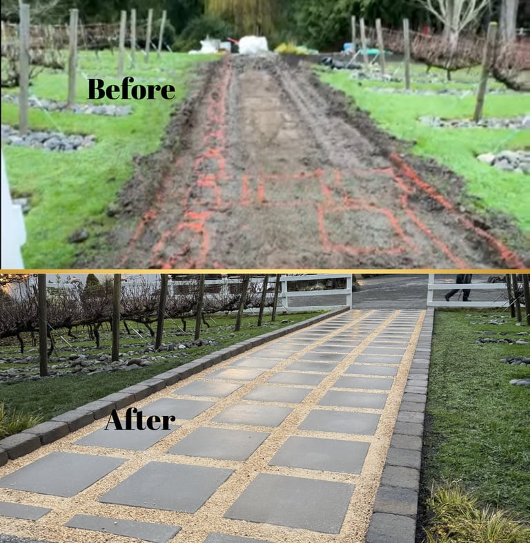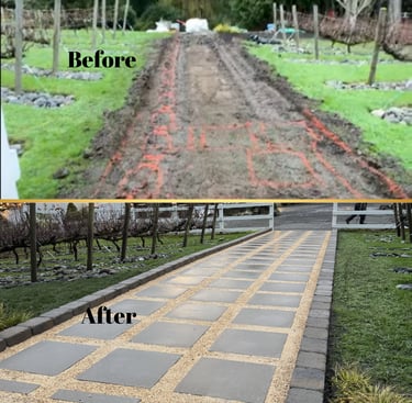What once was an unstructured dirt path became a defined architectural feature within the landscape. Through precise grading, base preparation, and strategic paver placement, we transformed the access route into a clean, durable, and visually balanced walkway.