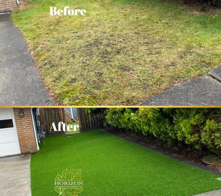 What once was a worn and uneven patch of natural grass was transformed into a clean, structured synthetic turf installation. Through proper ground preparation and precise installation, the space now offers a durable, low-maintenance, and consistently green outdoor surface year-round.