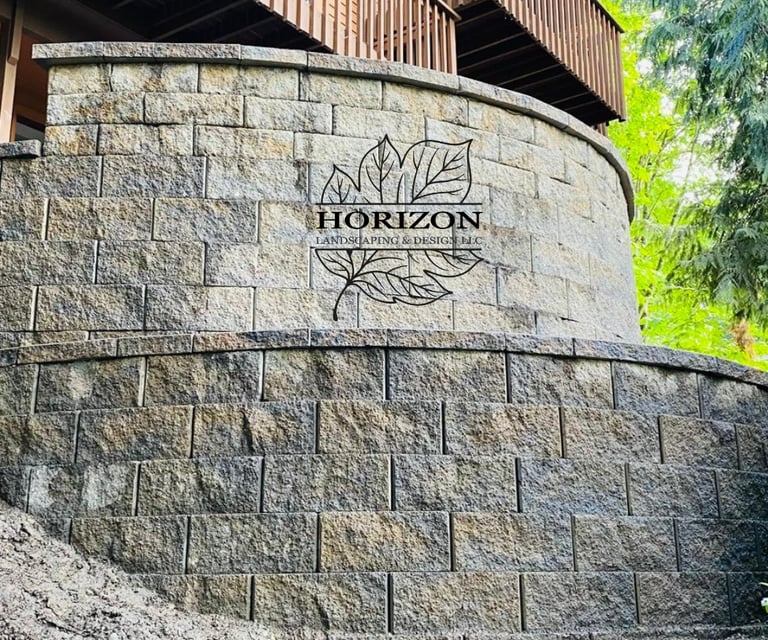 Professionally built retaining walls designed to provide structural support, manage soil pressure, and create defined landscape levels.